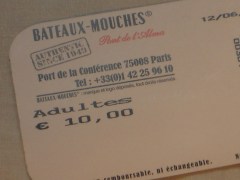 Item # 30. Origin: Paris. Additional information: “For more than 60 years, the Companie des Bateaux Mouches has told a love story to generations of passengers, those who are curious, poets, those who are romantic or in love…” http://www.bateaux-mouches.fr/en